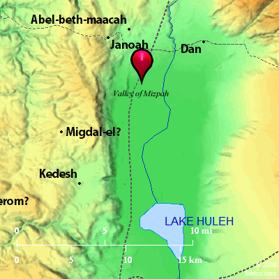 You are free to use up to 50 Biblos coprighted maps (small or large) for your website or presentation. Please credit Biblos.com. Occurrences Joshua 11:3 to the Canaanite on the east and on the west, and the Amorite, and the Hittite, and the Perizzite, and the Jebusite in the hill country, and the Hivite under Hermon in the land of Mizpah. Joshua 11:8 Yahweh delivered them into the hand of Israel, and they struck them, and chased them to great Sidon, and to Misrephoth Maim, and to the valley of Mizpeh eastward. They struck them until they left them none remaining. Encyclopedia MIZPAH; MIZPEHmiz'-pa, miz'-pe: This name is pointed both ways in the Hebrew, and is found usually with the article. The meaning seems to be "outlook" or "watchtower." It is natural, therefore, to look for the places so named in high positions commanding wide prospects.